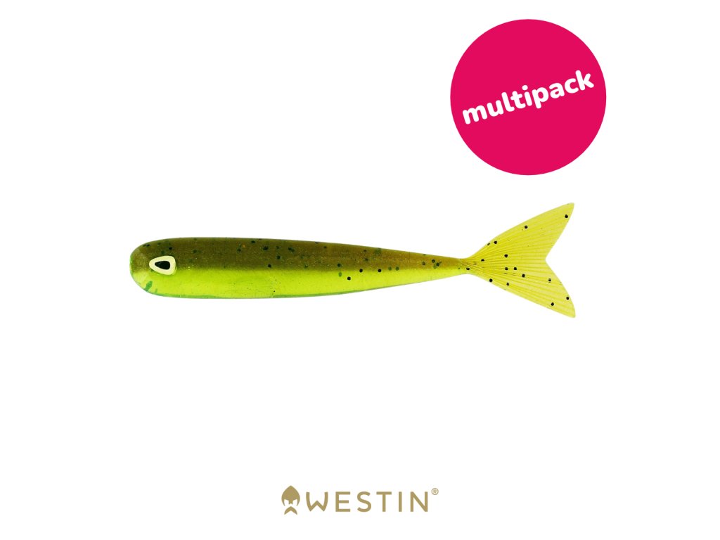 Díky svůdnému vzhledu a extra velkému ocasu jsou Westin MegaTeez naprosto neodolatelné. I ten nejmenší pohyb špičky prutu rozvlní ocasní ploutev tak, že se ladně pohybuje ve vodě – a i ti nejchladnokrevnější predátoři se zamilují na první pohled.