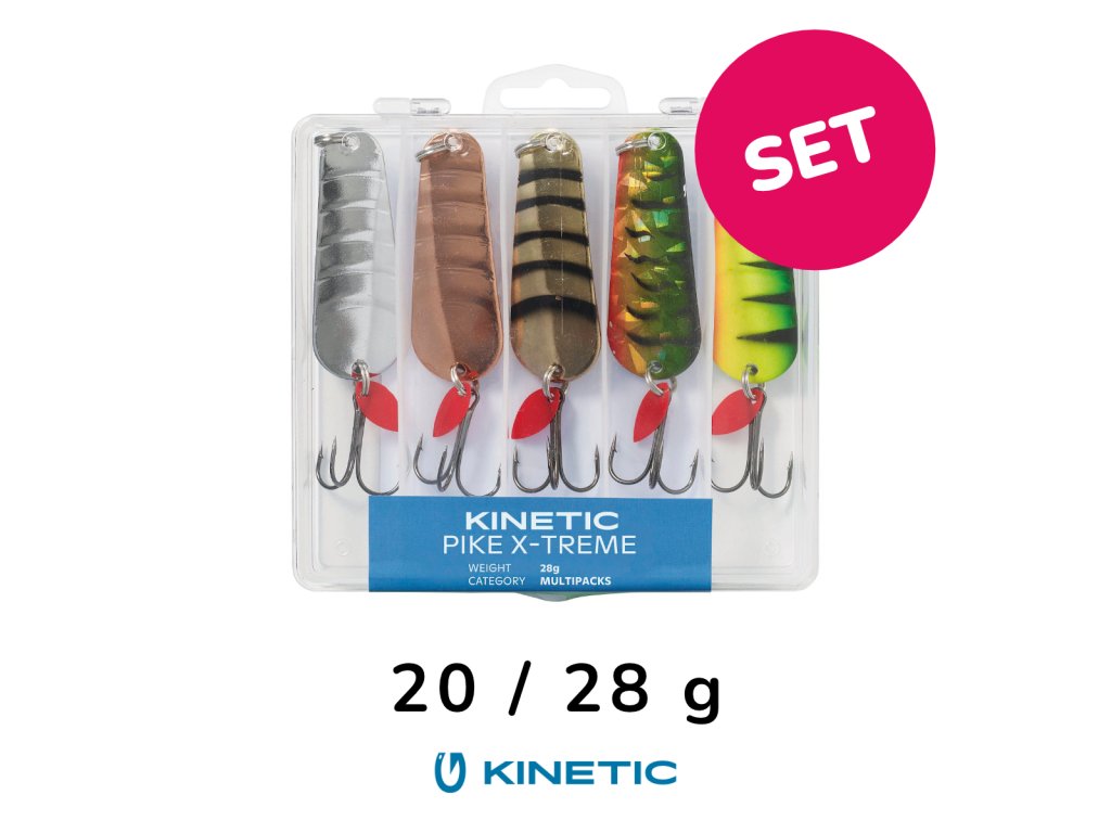 Sada plandavek Kinetic Pike X-treme je navržena pro cílený lov štik a dalších silných dravců – výrazná akce, silné vibrace a osvědčené barvy pro maximální účinnost.