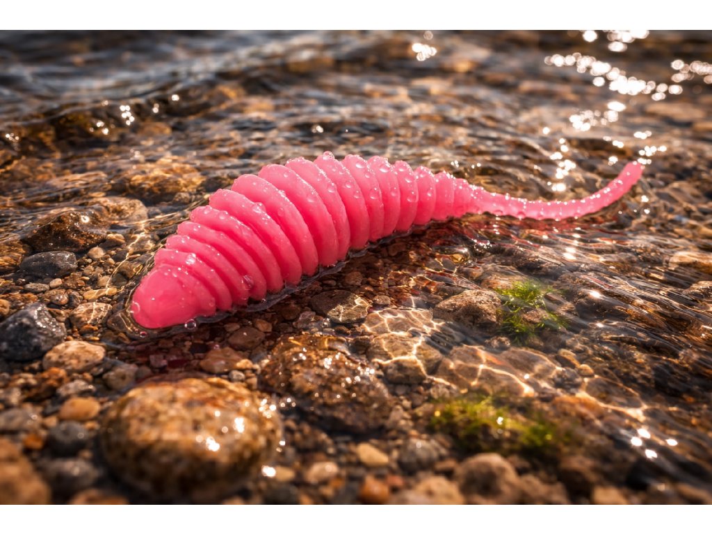 Při mírném přetížení se nástraha postaví kolmo nahoru a dokáže dráždit ryby i během krátkých, neaktivních pauz. Právě tento pohyb často rozhoduje o záběru, zejména když jsou pstruzi opatrní nebo apatičtí.